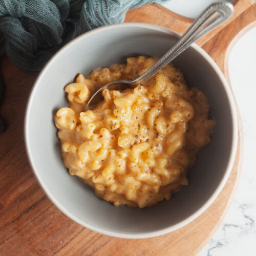 This air fryer mac and cheese is perfect for those nights when you want an easy comfort food meal that feels indulgent. This recipe calls for smoked Gouda cheese and paprika, which gives the dish a signature smokey flavor that makes it extra special.